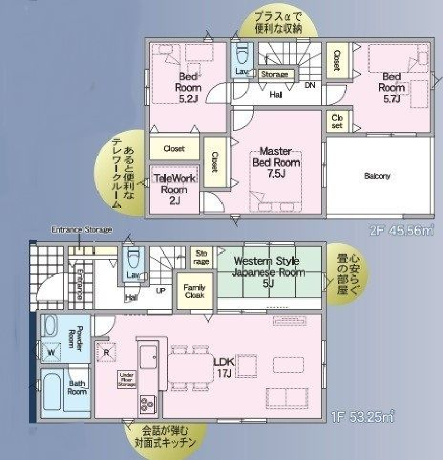 間取り/階数 | 4LDK(1F:LDK16・和4.5、2F:洋7.5・洋5.25・洋5.25) / 地上2階 | ||