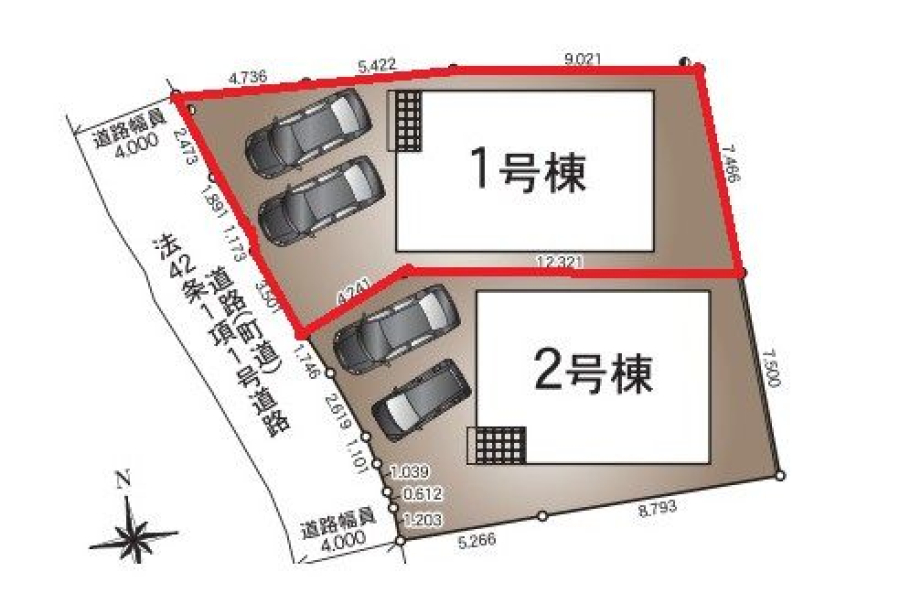 接道1(向/幅) | 西 / 4.0m | 接道2(向/幅) | |