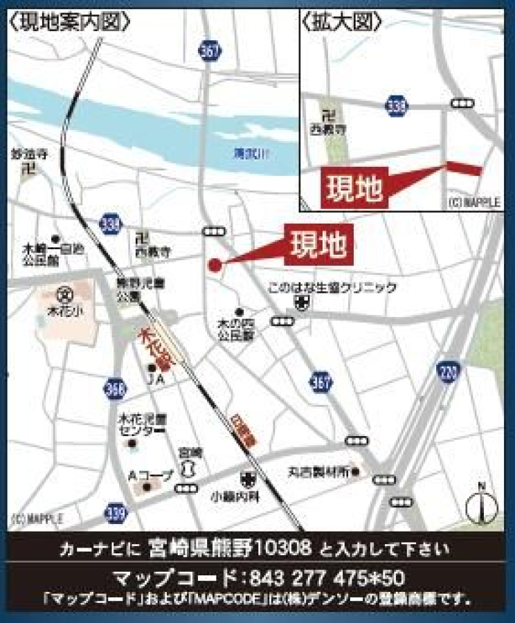 | 公園 | 300 m (熊野街区公園) | 銀行 | 540 m (宮崎銀行 木花支店) |