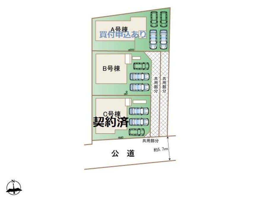 | 接道1(向/幅) | 南 / 5.7m | 接道2(向/幅) | |