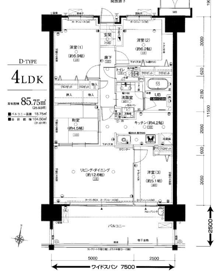 | 専有面積 | 85.75m²(25.93坪) | ベランダ面積 | |