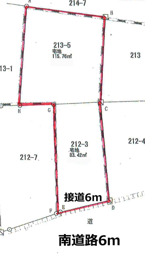 | 接道1(向/幅) | 南 / 6.0m | ||