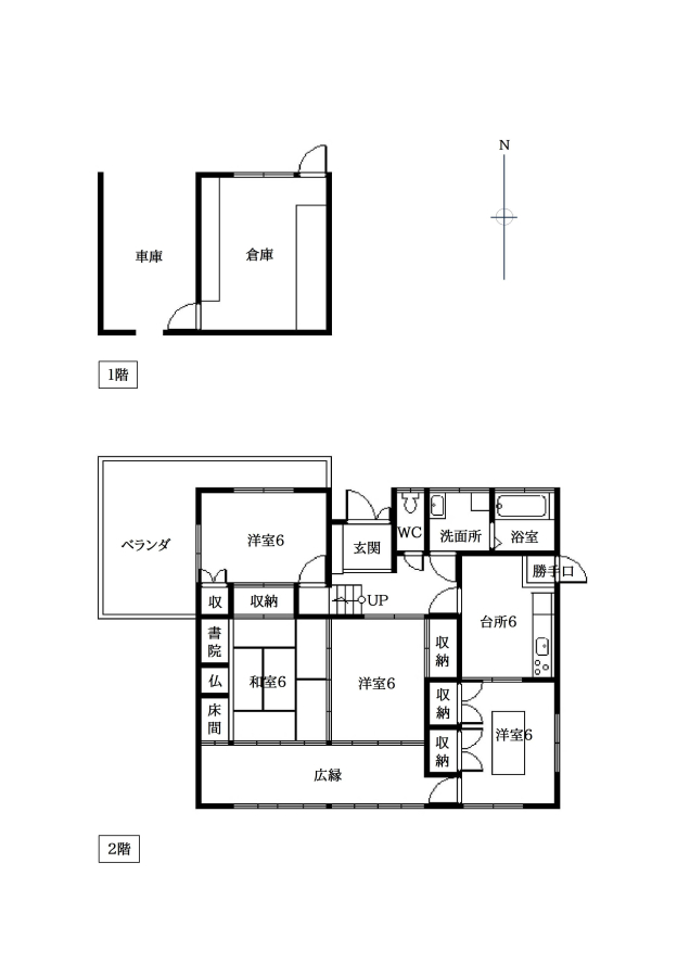 | 間取り/階数 | 4DK(洋室6帖×3、和室6帖、DK6帖、倉庫10帖) / 地上2階 | ||