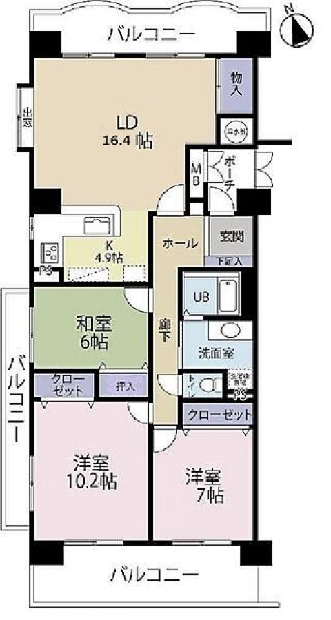 | 専有面積 | 102.44m²(30.98坪) | ベランダ面積 | |