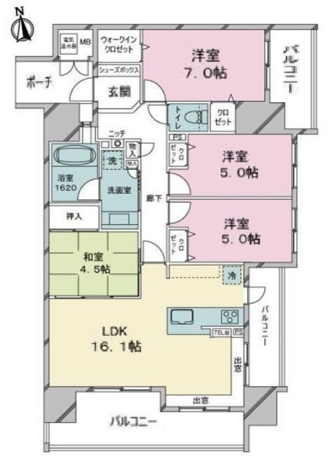 - オール電化マンション 5階 4LDK 東南角住戸 近隣に商業施設充実