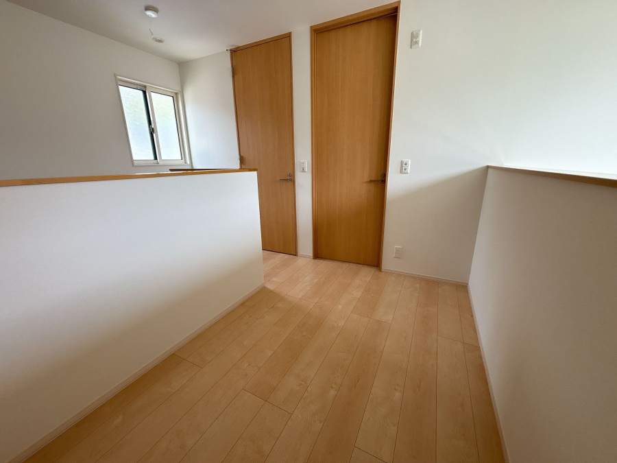 2階の廊下も光が差し込みとても明るく、主寝室と子供部屋が2部屋あります。