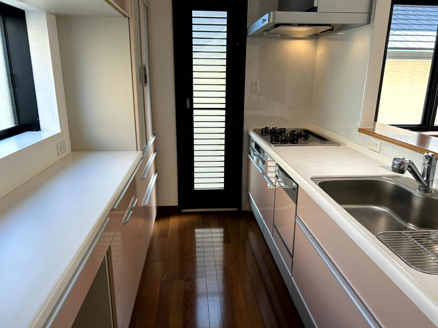 | 設備 | ガス(都市)バス(専用)トイレ(専用)バス・トイレ別シャワーコンロ種別(ガス)コンロ口数(三口)システムキッチン給湯追焚機能シャワー付洗面化粧台冷暖房(エアコン)床下収納ウォークインクローゼット洗濯機置き場(室内)専用庭バルコニーTVドアホン二世帯住宅温水洗浄便座カウンターキッチン食器洗い乾燥機全居室収納 インターホントイレ2ヵ所 | ||