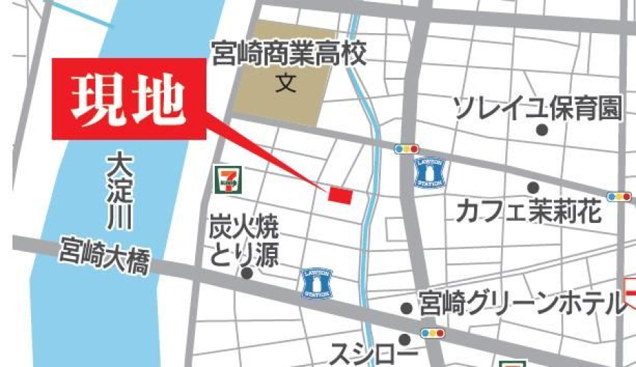 | スーパー | コンビニ | 270 m (ローソン 宮崎大橋店) | |