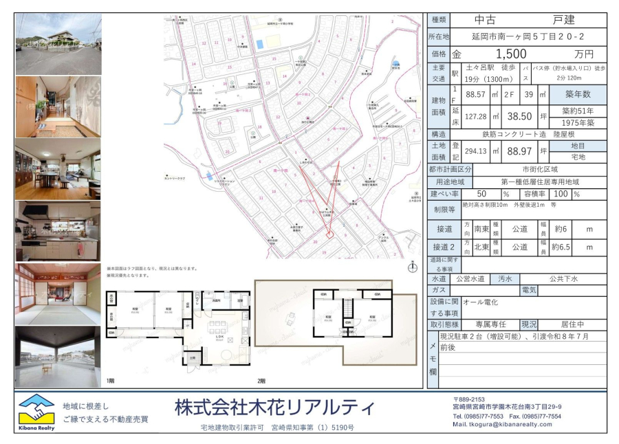 | 校区 | 延岡市立一ケ岡小学校(670m) / 延岡市立土々呂中学校(1200m) | 取引態様 | 専属専任 |