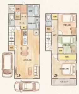 | 建物延べ面積 | 84.45m2(25.55坪) |
