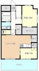 | 広さ | 3DK / 専有面積 47.20m2(14.28坪) |