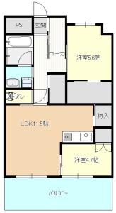 | 広さ | 2LDK / 専有面積 56.90m2(17.21坪) |