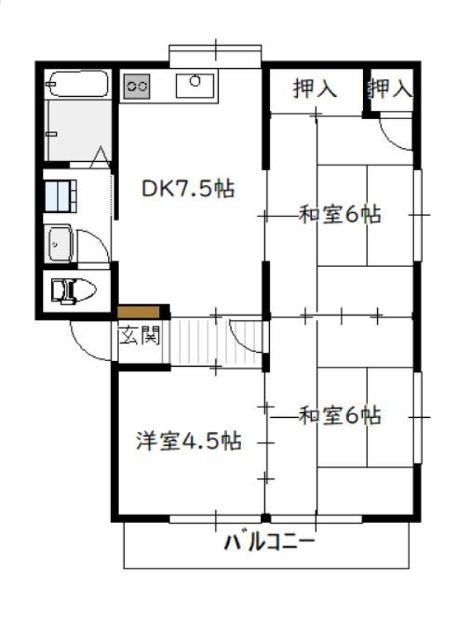 | 間取り | 3DK(DK7.5・洋4.5・和6・和6) | 部屋向き | 南 |