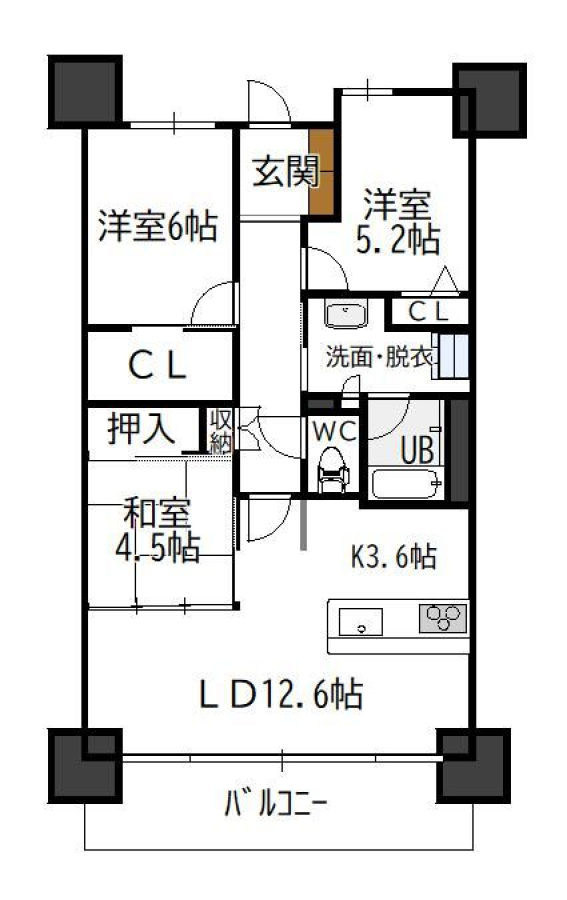 | 間取り | 3LDK(LDK16.2・和4.5・洋6・洋5.2) | 部屋向き | 南 |