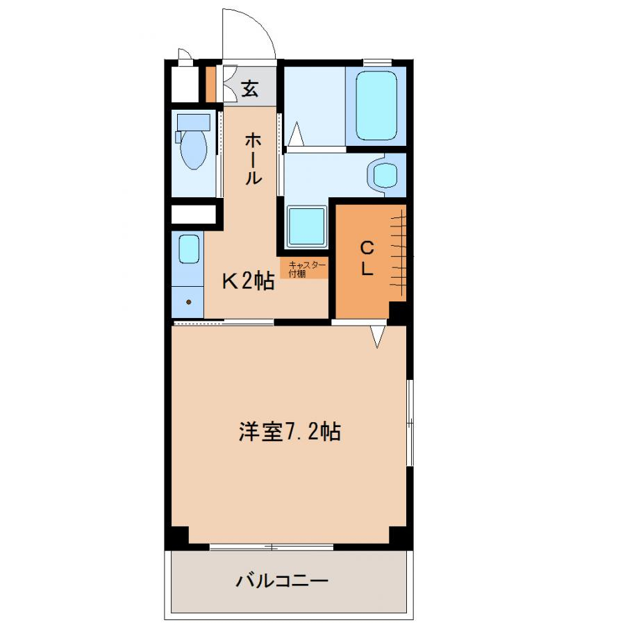 | 間取り | 1K(K2帖、洋7.2帖) | 部屋向き | 南東 |