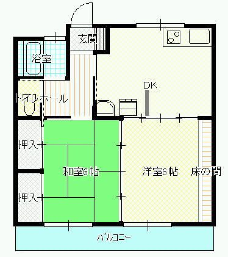 間取り | 2DK(和6・洋6・DK6) | 部屋向き | 東 |