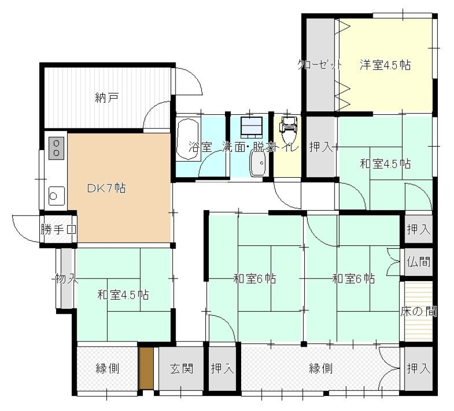- 広々とした5DKの平屋。エアコン2基付。