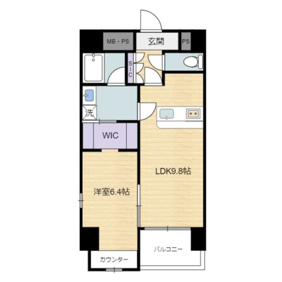 | 間取り | 1LDK(LDK9.8帖 洋室6.4帖) | 部屋向き | 南 |