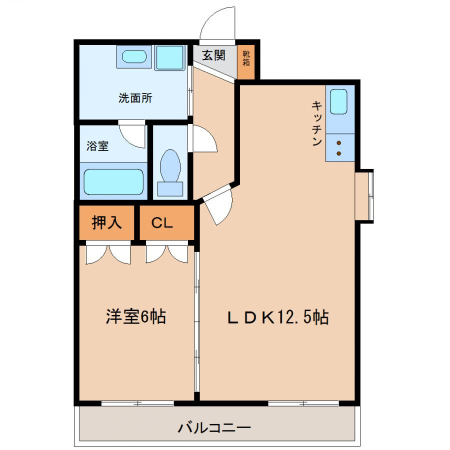 | 間取り | 1LDK(LDK12.5帖、洋室6帖) | 部屋向き | 南 |