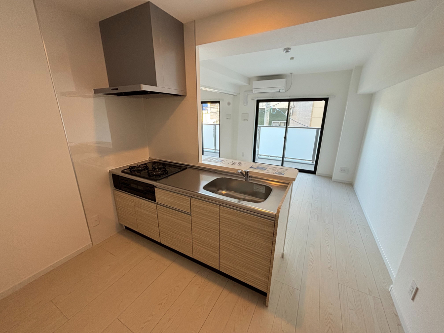 ★南向きの明るい居室は、心地よい陽光に包まれます。開放感あふれる対面キッチンには使い勝手の良い3口コンロを採用し、料理の時間がより楽しく効率的に。ウォークインクローゼットやシューズボックスなど、収納力も充実しています。