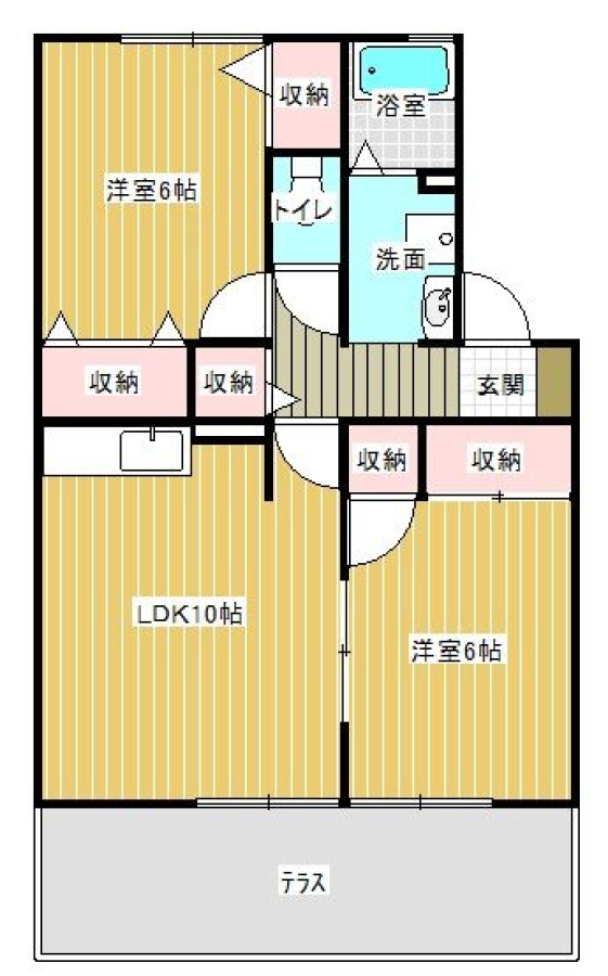 間取り | 2LDK(洋6 洋6 LDK10) | 部屋向き | 南 |