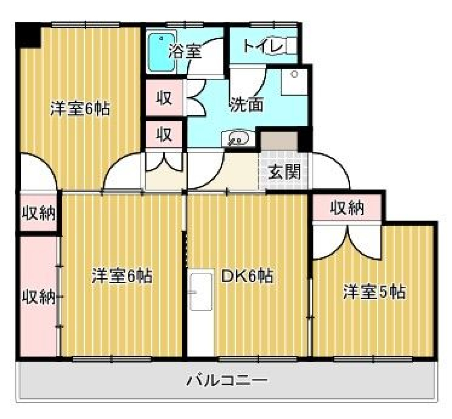 | 間取り | 3DK(洋5 洋6 洋6 DK6) | 部屋向き | 南 |