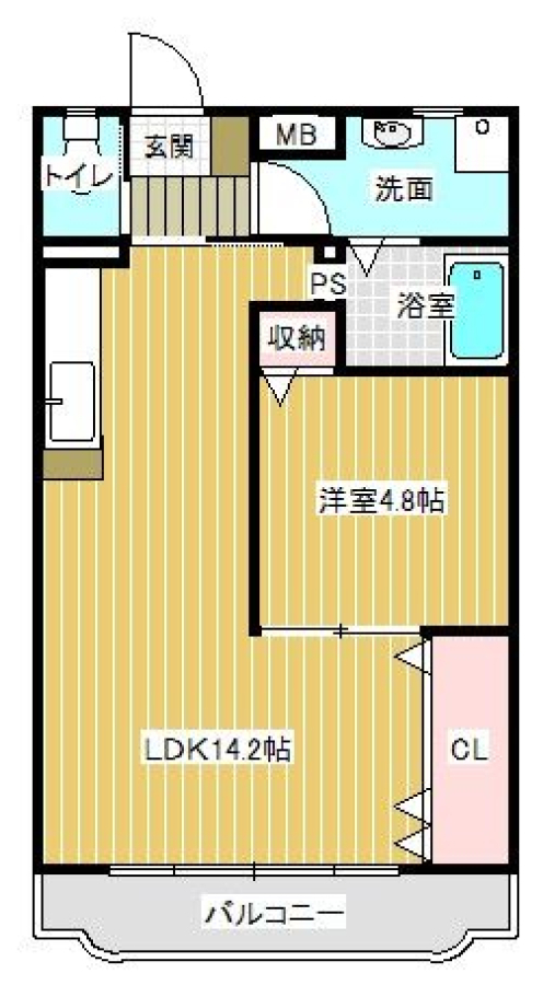 | 間取り | 1LDK(洋4.8 LDK14.2) | 部屋向き | 南 |