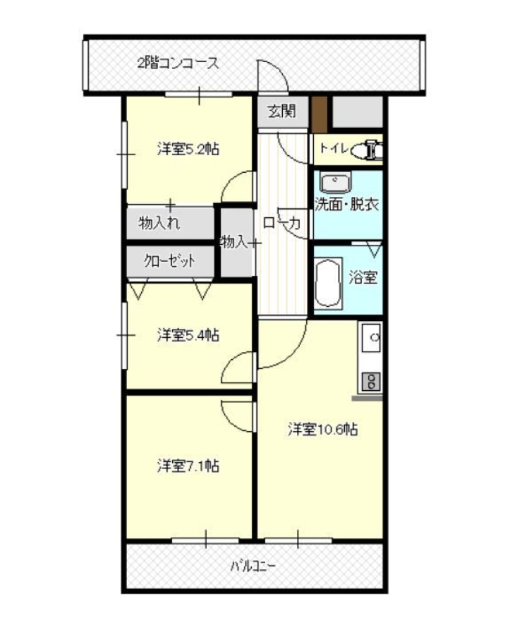 | 間取り | 3LDK(LDK10.6帖・洋7.1帖・洋5.4帖・洋5.2帖) | 部屋向き | 南 |