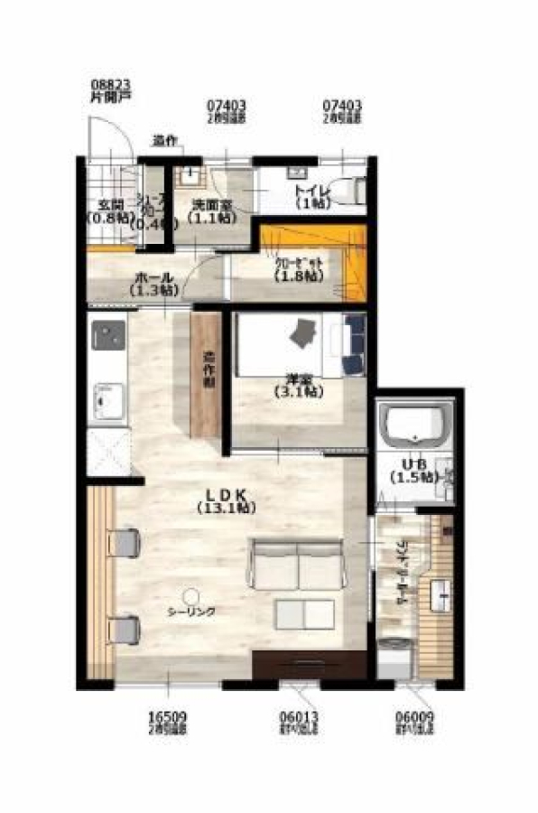| 間取り | 1LDK(洋3.1 LDK13.1) | 部屋向き | 南 |