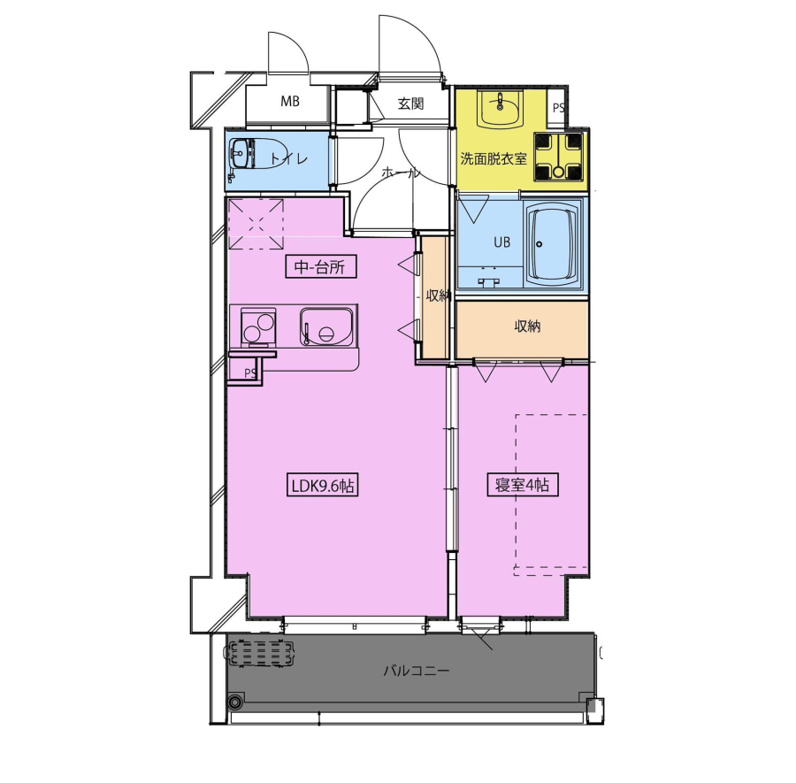 | 間取り | 1LDK(LDK9.6 洋4) | 部屋向き | 南 |