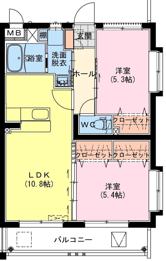 | 間取り | 2LDK(LDK10.8 洋室5.4 洋室5.3) | 部屋向き | 南 |