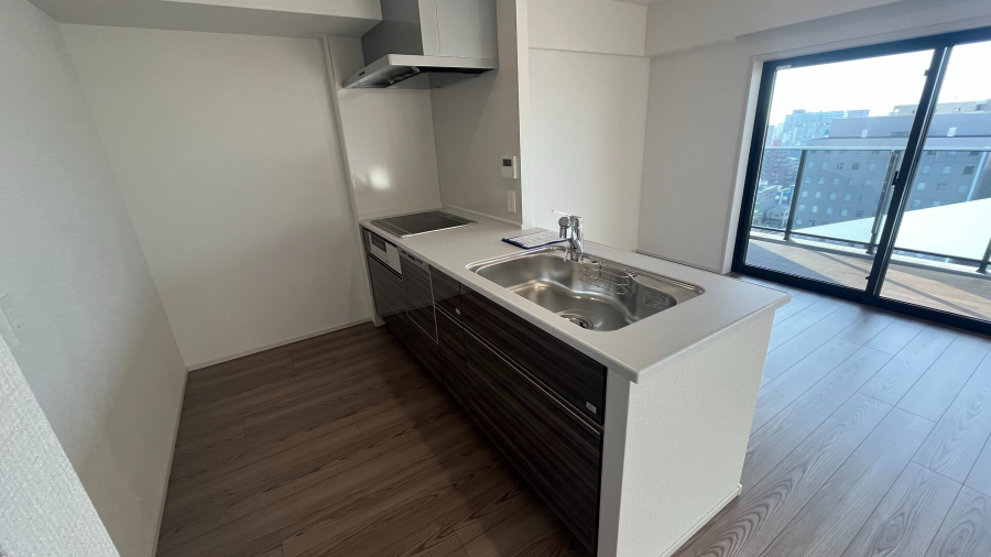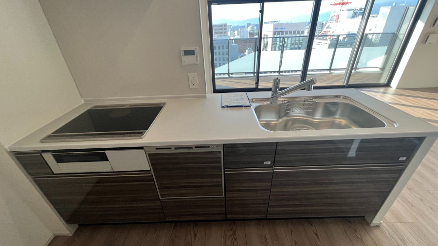 キッチンは3口のIHコンロ、食洗機が完備されたシステムキッチン。