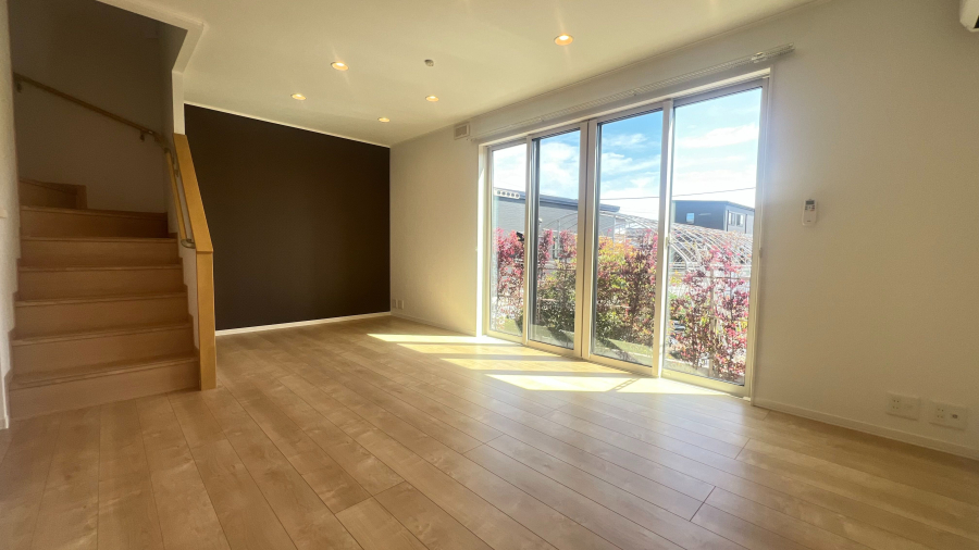 高気密断熱性能住宅。アルミ樹脂複合サッシ・ハイカットペアガラスを採用しており暑さ寒さが室内に伝わりづらい仕様です。