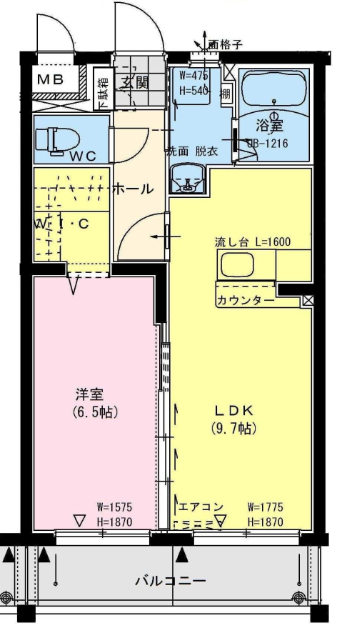 間取り | 1LDK(LDK9.7・洋6.5) | 部屋向き | 南 |