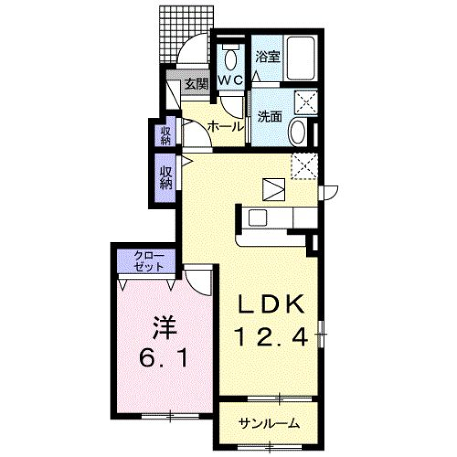 | 間取り | 1LDK(LDK12.4・洋6.1) | 部屋向き | 東 |