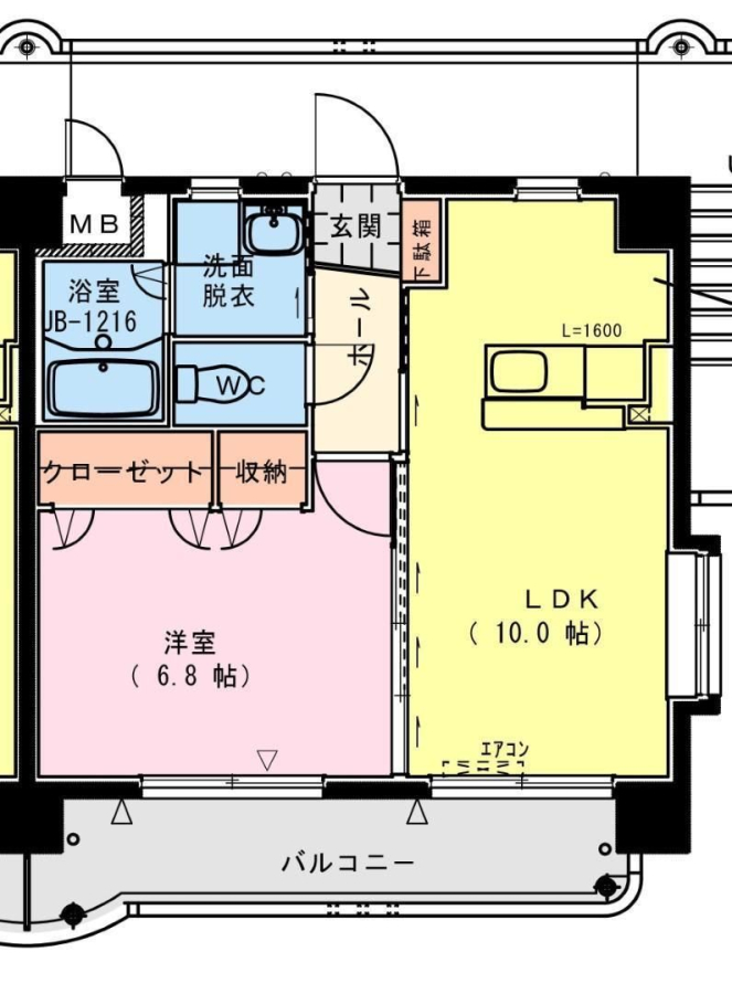 | 間取り | 1LDK(LDK10・洋6.8) | 部屋向き | 南 |
