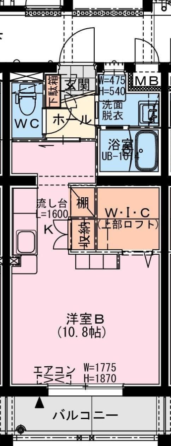 | 間取り | 1R(洋10.8+ロフト) | 部屋向き | 南 |