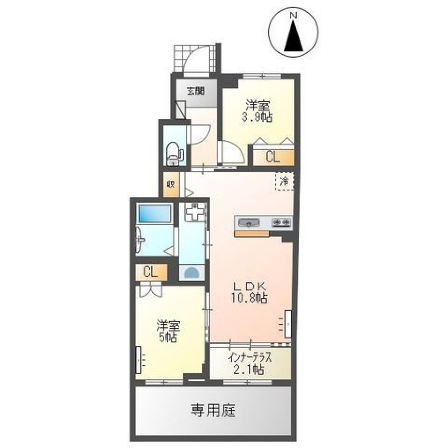 | 間取り | 2LDK(LDK10.8帖 洋5.0帖 洋3.9帖) | 部屋向き | 南 |