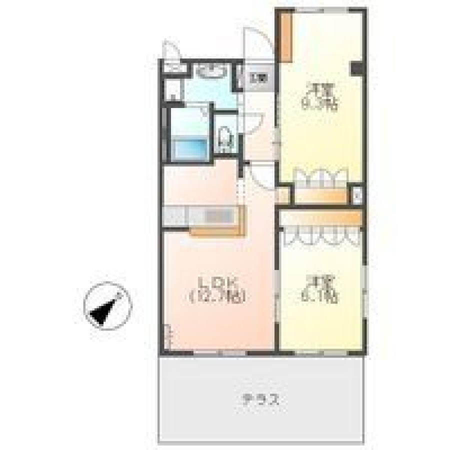 | 間取り | 2LDK(LDK12.7帖 洋9.3帖 洋6.1帖) | 部屋向き | 南東 |