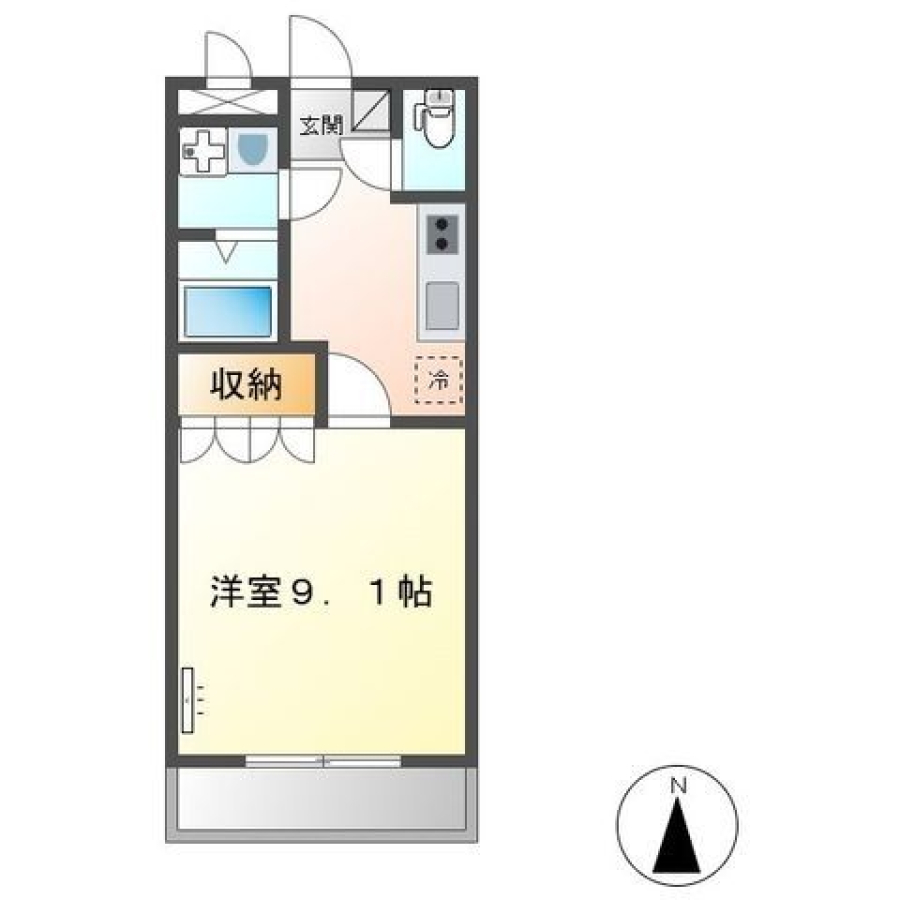 | 間取り | 1K(洋9.1帖) | 部屋向き | 南 |
