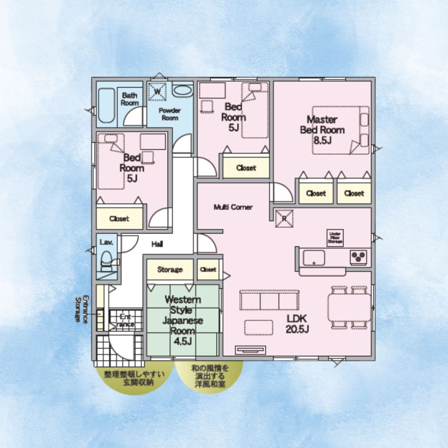 | 間取り/階数 | 4LDK(1階:LDK20.5、和4.5、洋5、洋5、洋8.5) / 地上1階 |