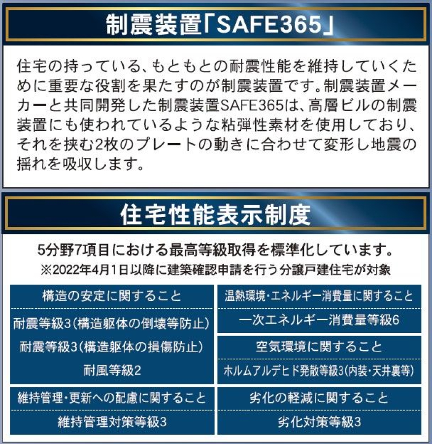 | 設備 | 水道(公営) / 排水(下水) / バス(専用) / トイレ(専用) / バス・トイレ別 / シャワー / コンロ種別(IH) / コンロ口数(三口) / システムキッチン / 給湯 / 追焚機能 / シャワー付洗面化粧台 / 洗濯機置き場(室内) / フローリング / TVドアホン / 住宅性能保証付き / 温水洗浄便座 / オール電化 / カウンターキッチン / 浴室乾燥機 / 耐震構造 / 制震構造 / 洗面所独立 / 防犯カメラ / 全居室収納 / クローゼット / シューズボックス / 設計住宅性能評価書 / 建設住宅性能評価書(新築時) / 建築確認完了検査済証 / 瑕疵保険(国交省指定)(付) / 瑕疵保証(不動産会社独自)(有) / インターホン / 洗面化粧台 / トイレ2ヵ所 / 上水道 / 浴室暖房 / エコキュート / 平屋 |