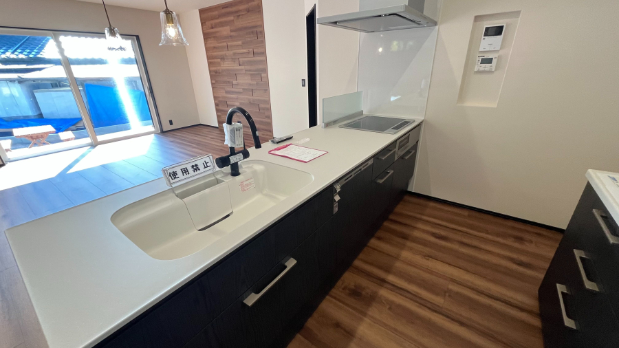 キッチンは使いやすく、手入れも楽なIHコンロ完備のシステムキッチン。食器洗浄乾燥機付き。