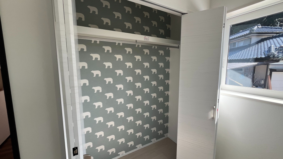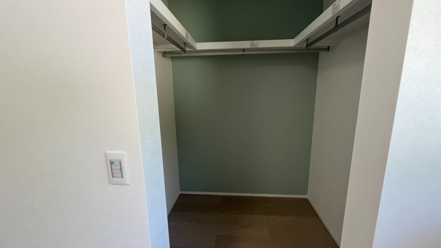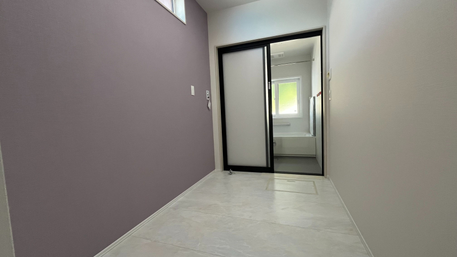 脱衣所も広く設計されており、天気の悪い日は脱衣所に洗濯物を干すことも可能。