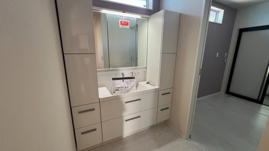 脱衣所と洗面台が分かれており、来客時も脱衣所に入ることなく洗面台を利用して頂くことができます。